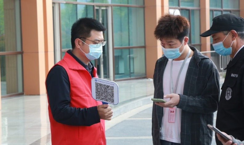 党员防疫志愿者们配合门卫查验双码、测量体温、做好来访记录,坚决守好先研院疫情防控的第一道“防线”。