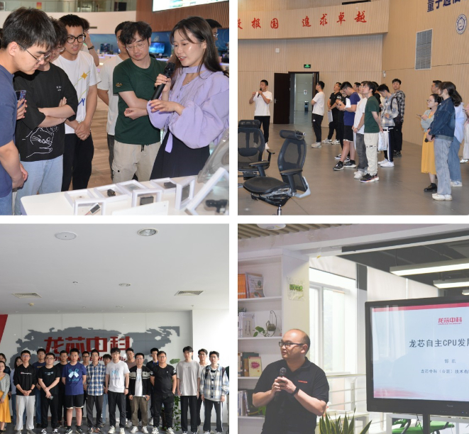 在创新成果展厅,同学们在讲解老师的带领下详细了解了先研院的发展历程以及在集成电路、人工智能、电子通信、生物医药、新型材料等领域的创新成果。通过与工作人员的交流以及亲身体验,同学们深入了解了更多关于前沿科技创新成果的信息。随后,同学们来到量子京沪干线合肥总控中心。在工作人员的耐心讲解下,大家学习了量子加密技术的原理、技术实现方式及其在通讯、金融、安全等领域的应用。参观最后一站是龙芯中科(合肥)技术有限公司,同学们通过实地参观体验,进一步加深了对龙芯产品及国内芯片行业生态的了解,大家深刻认识到了国内芯片行业虽然受到来自多方的限制,仍然能从桎梏中迸发出巨大的实力和潜力。